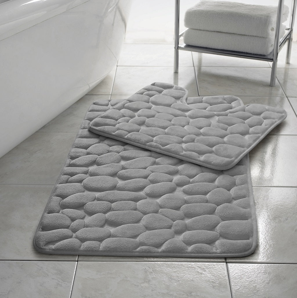 Pebbles Bath Mat Set 2 Pieces Memory Foam Toilet Rugs
